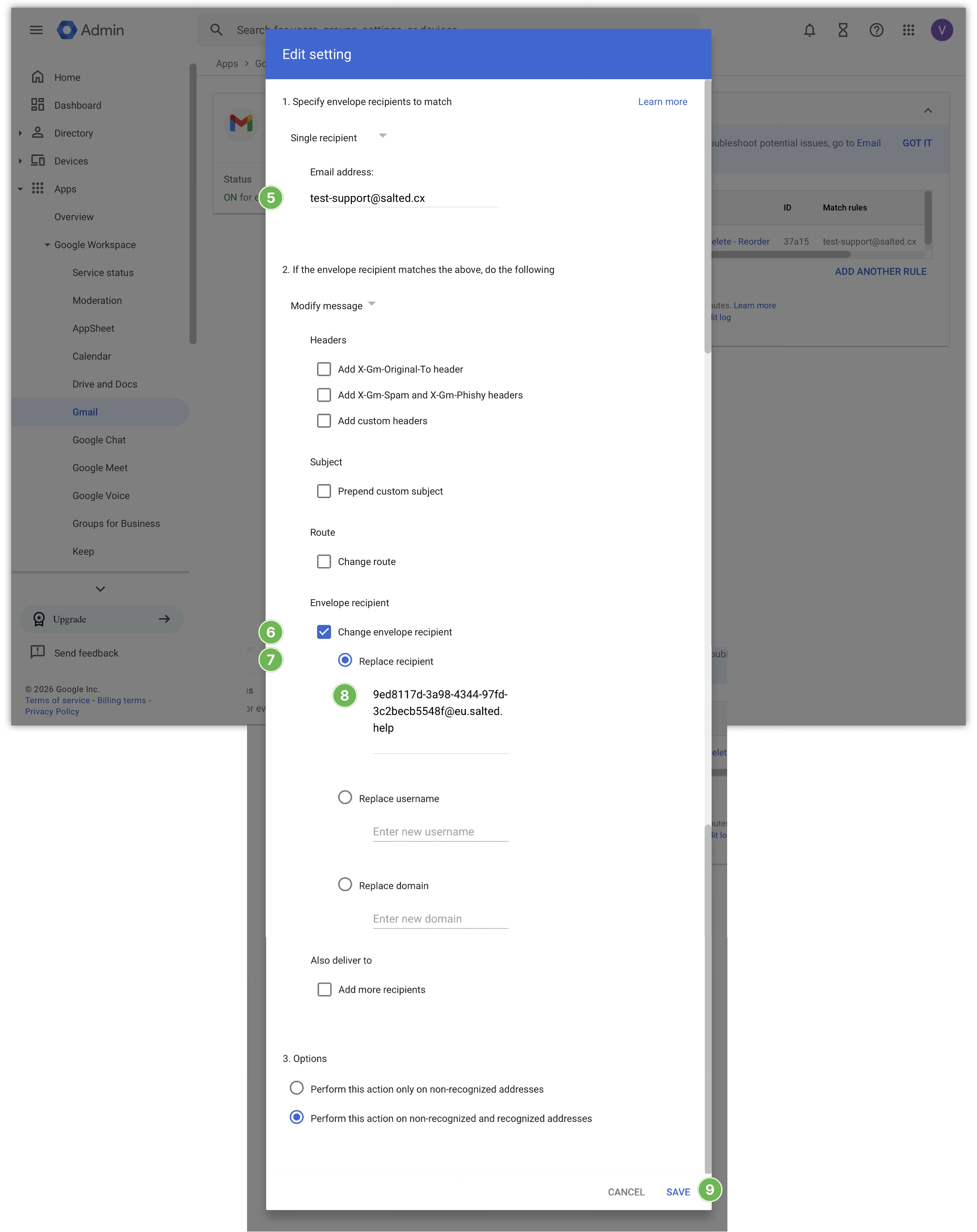 - Make sure that the option in Options section is set to Perform this action on non-recognized and recognized addresses.