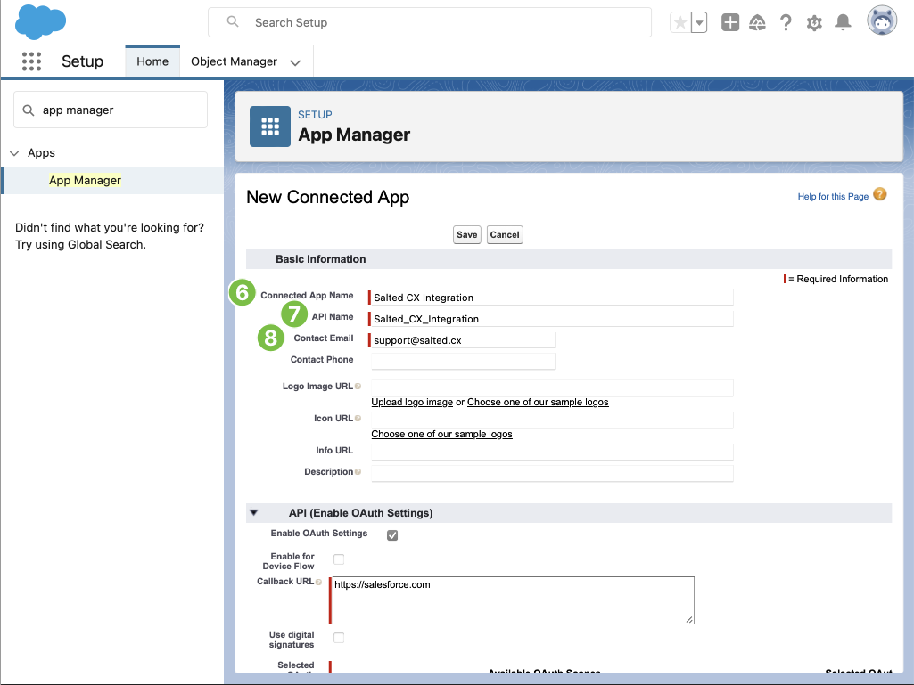 1. Type Salted CX Integration into the Connected App Name