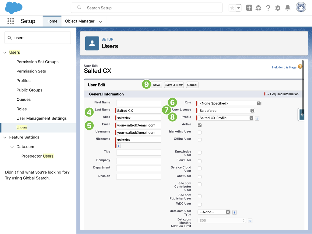 Now you have a user that will be used by Salted CX to download data from Salesforce.