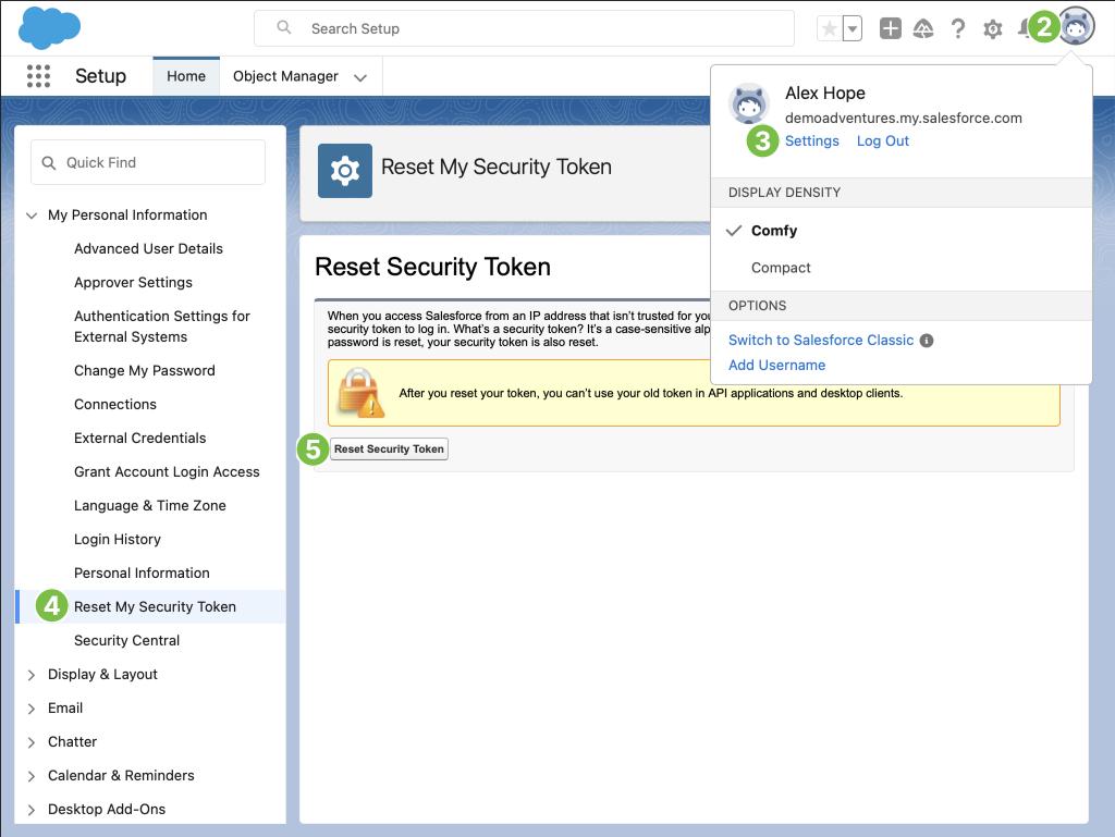 Follow these steps to retrieve the Security Token for the API user: