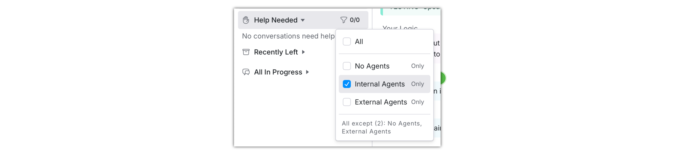You can see who exactly is in the conversation in the tooltip, or you can click on any conversation to open a join screen and see the names of the engaged agents.