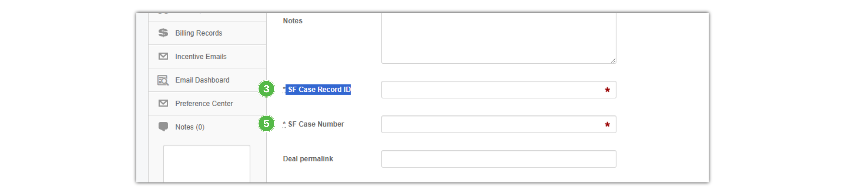 - Paste the copied Salesforce record ID to SF Case Record ID