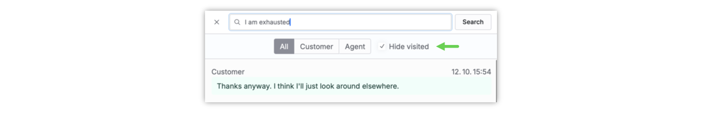 When you find turns that are similar to your search you can click on them and jump to the customer journey with that turn. This helps you to better understand the context and find more turns like the one you have clicked.