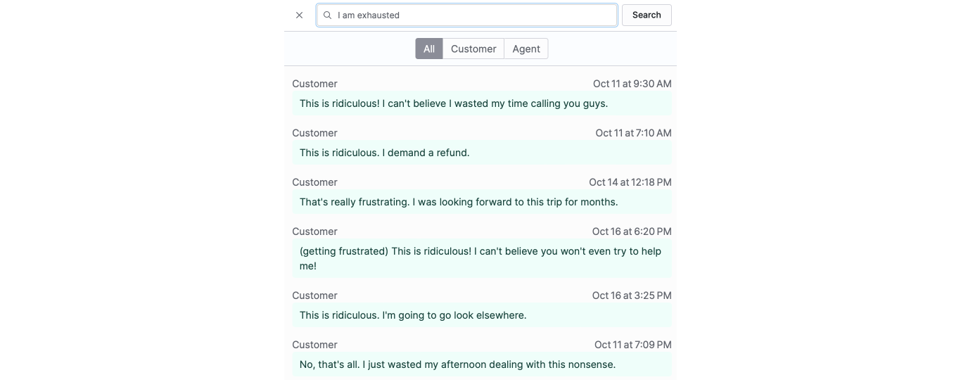 You can now jump directly to the spot where the customer sentiment changed, where the agent stopped following the company policy, and to many other interesting spots in the conversation.