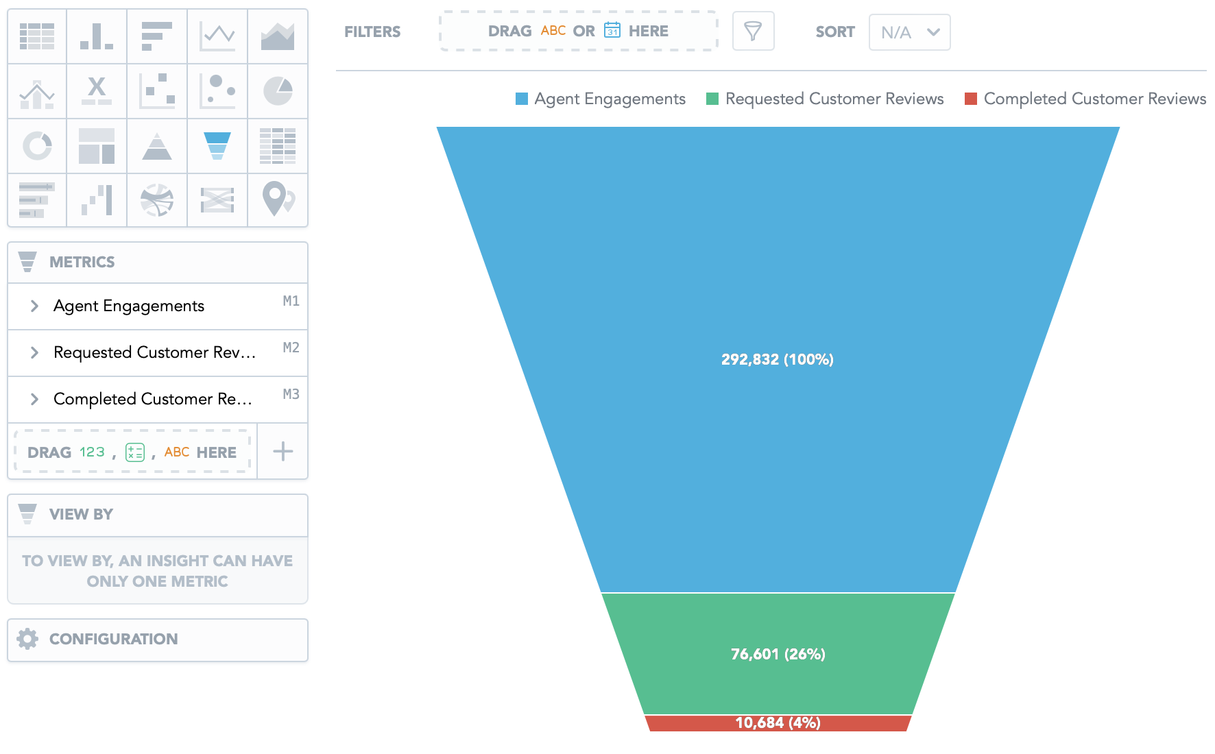 You can now build waterfall charts to see how individual numbers contribute to a total value. You can either use individual metrics or a single metric segmented by an attribute.